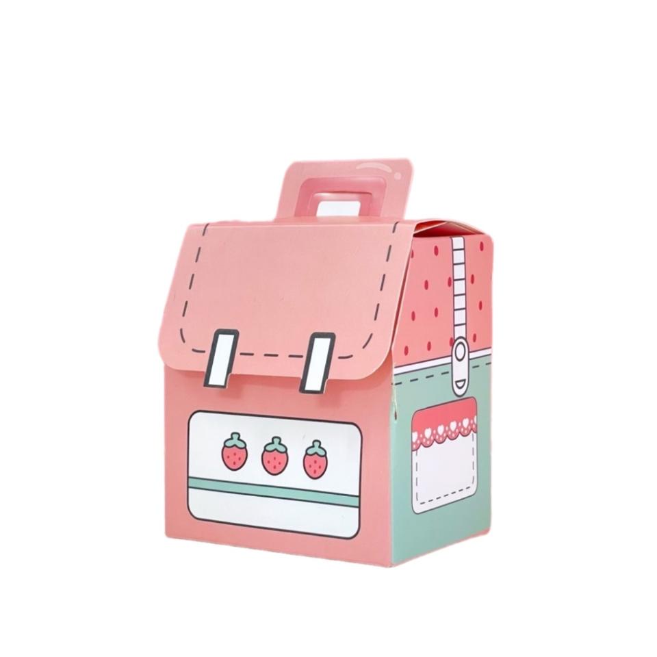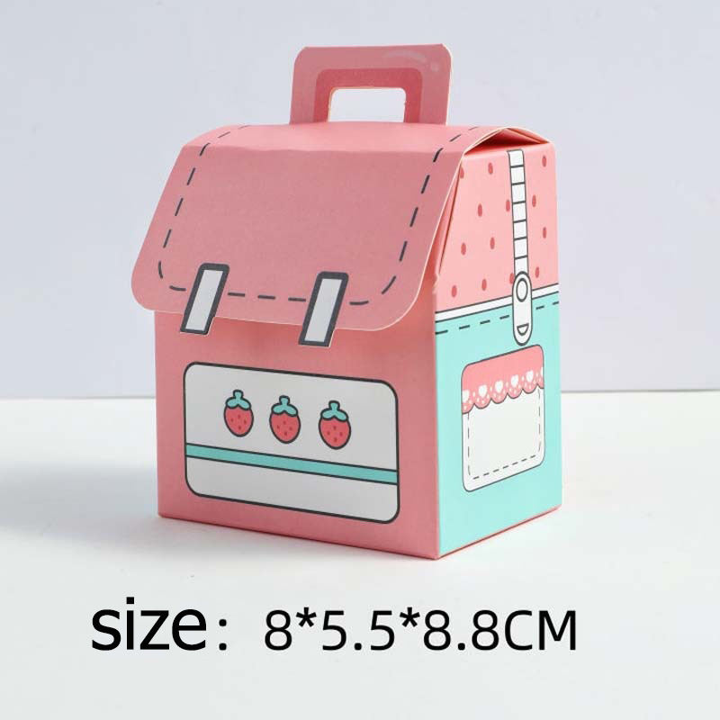 Caja de regalo de mochila de lujo con tapa adhesiva (8,5x8,8cm) -Caja de embalaje estilo mochila escolar personalizada para cumpleaños (fresa)