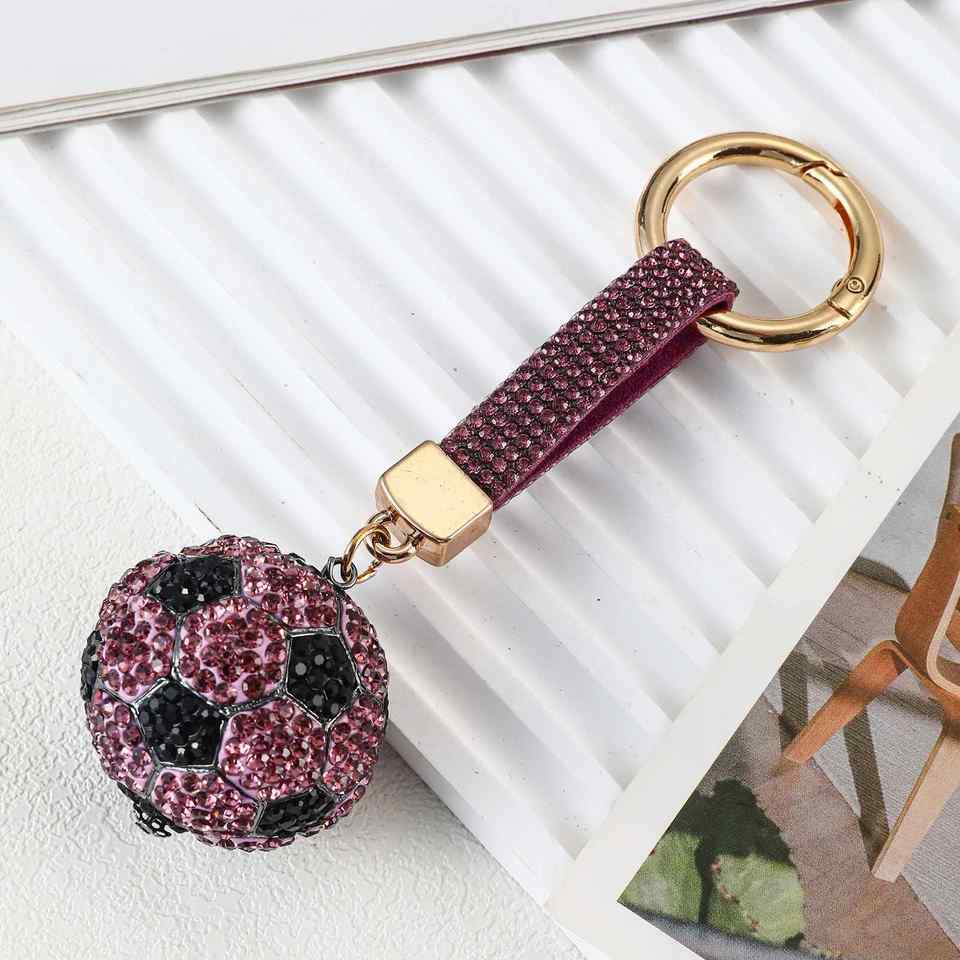 Llavero de Lujo para Bolso, Llavero de Coche con Diamantes de Imitación, Llavero de Fútbol, Accesorios para Bolsos, Llavero Personalizado de Bola de Cristal Brillante, Juguete