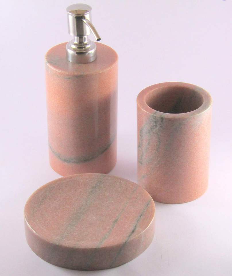 Accesorio de baño de lujo Color Rosa tono mármol resina accesorios de baño Juego de 3 dispensador de jabón, soporte para cepillo de dientes, jabonera