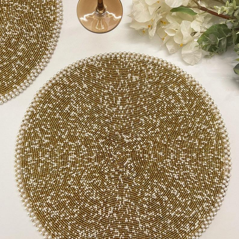 Camino de Mesa y Juego de Manteles Individuales de Lujo con Cuentas para Regalo de Inauguración de Casa o Festividades, Listo para Regalar con Acabado Colorido, Nuevo Camino de Mesa