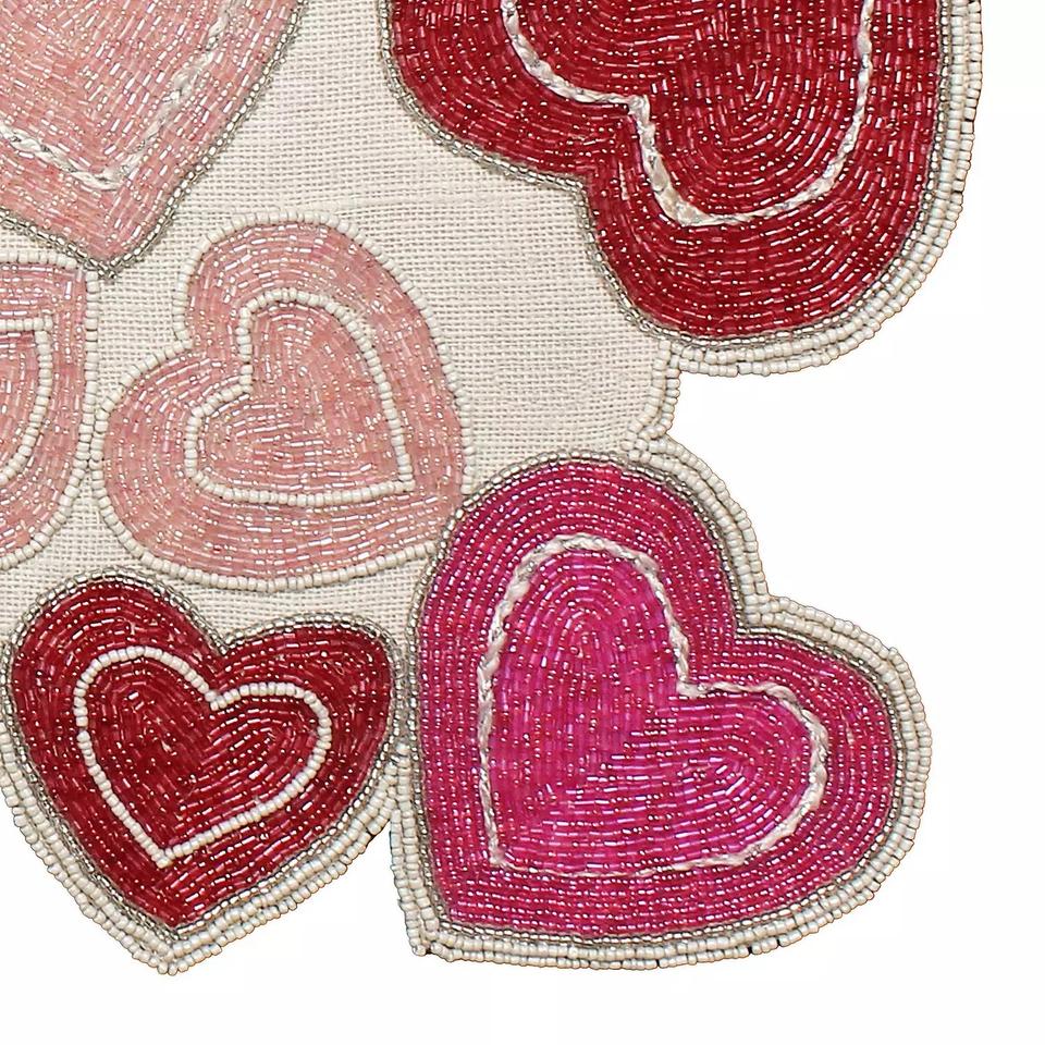 Camino de mesa de yute bordado con cuentas de lujo, diseño de San Valentín para cita romántica, Decoración de mesa de cena