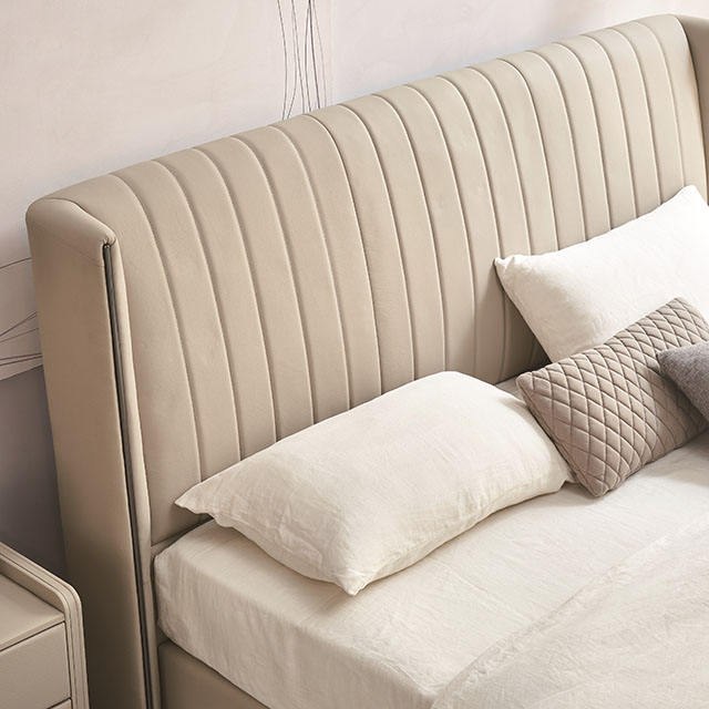 Conjunto de muebles de dormitorio de lujo Cama king size con marco de madera y diseño de cuero tapizado moderno