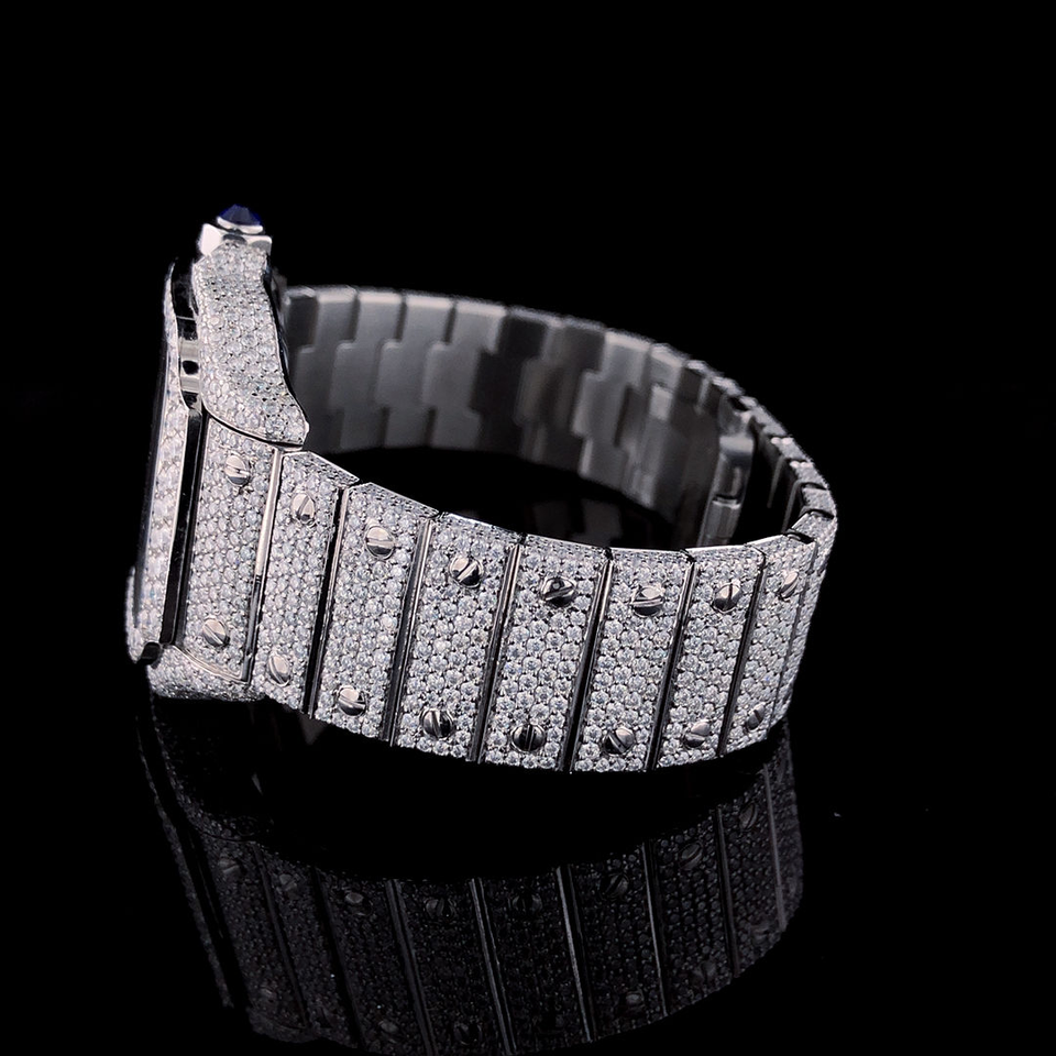 Lujo Mejor Calidad VVS Moissanite Diamante Reloj para hombre Chapado en oro blanco Acero inoxidable Romano Hip Hop Deporte Moda Cumpleaños