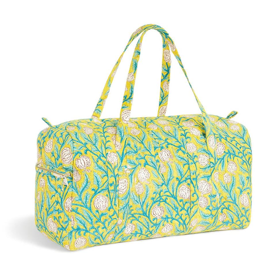 Bolsa de Viaje de Lujo con Estampado de Bloques - Diseño Acolchado Estilo Boho - Uso para Gimnasio o Viajes Cortos - Gran Capacidad, Ecológica, Duradera y de Alta Calidad