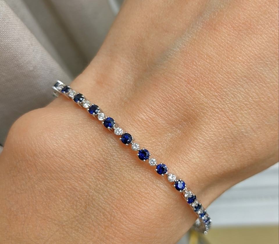Pulsera de Tenis con Zafiro Azul de Lujo, Diseño Clásico Simple, Alta Calidad, Regalo de Navidad para Mujeres y Hombres