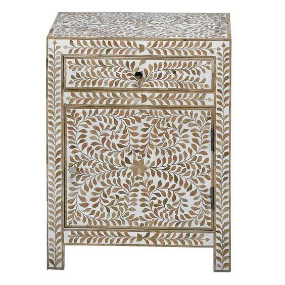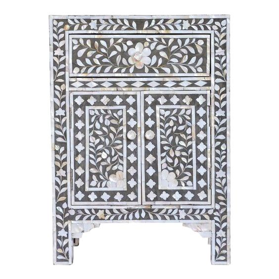 Mueble de Salón Moderno de Alta Calidad con Incrustaciones de Hueso, Hecho a Mano, con 2 Cajones y Estantes para Dormitorio y Comedor