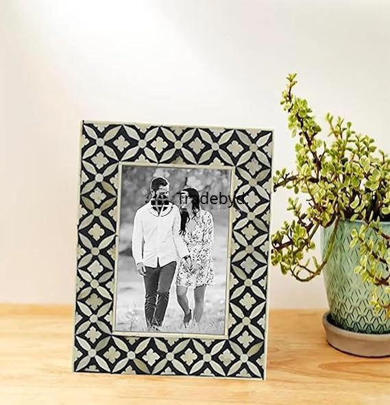 Marco de Fotos de Lujo con Incrustaciones de Hueso, Diseño Creativo, Calidad Premium, Hecho a Mano, Acabado Brillante, con Logotipo Personalizado por Tradebyd