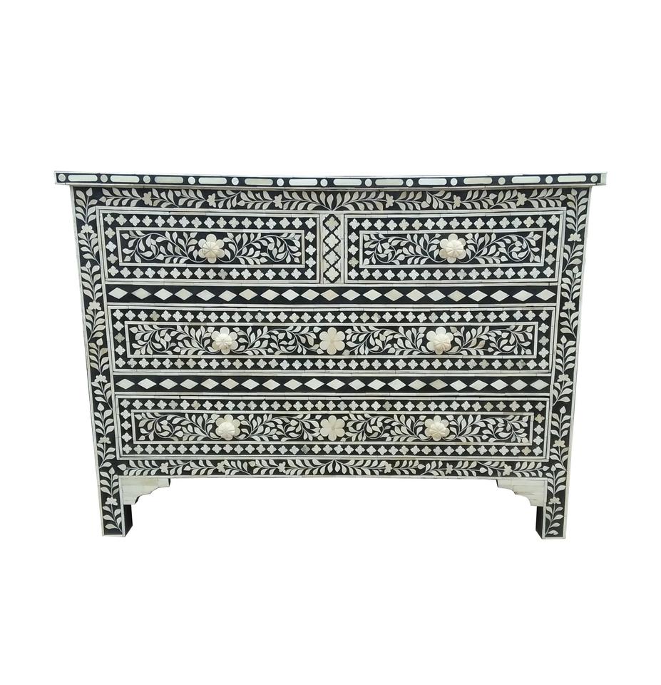 Cajón con incrustaciones de hueso de lujo, cajones de pecho, muebles de sala de estar de granja, tamaño personalizable Floral negro