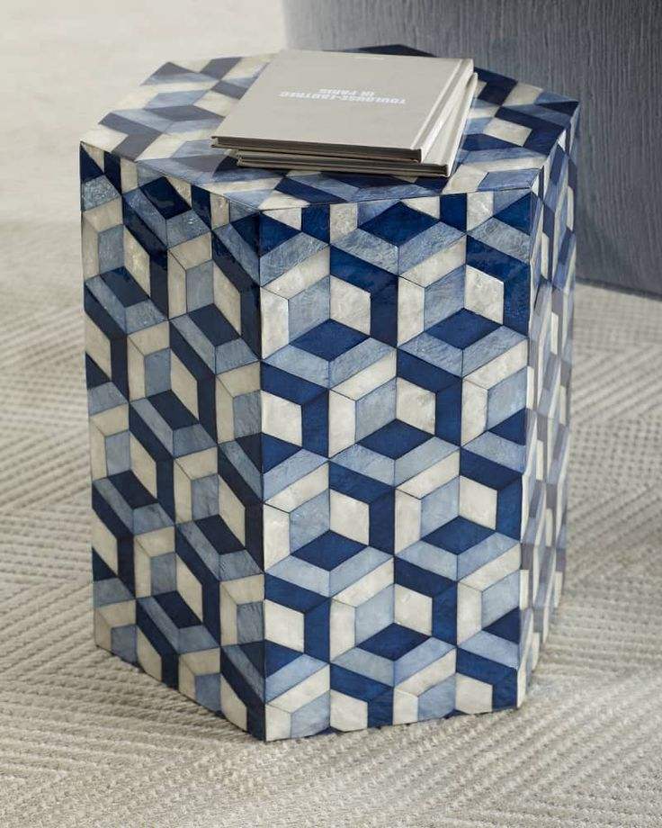 Mesa Auxiliar de Lujo con Incrustaciones de Hueso, Detalles Hechos a Mano, Ideal para Decoración de Sala de Estar, Dormitorio y Temas de Boutique