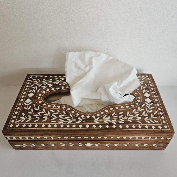 Caja de Pañuelos de Madera de Lujo Hecha a Mano, Ecológica y Moderna con Incrustaciones de Hueso y Forma Natural, para Venta al por Mayor, Decoración del Hogar en India