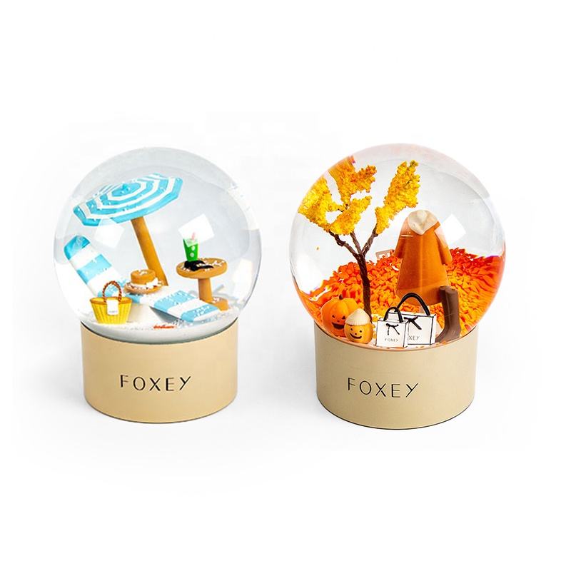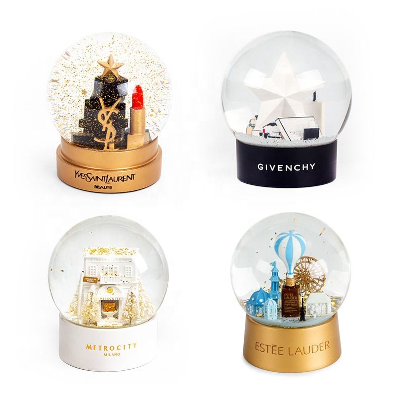 Abalorios de resina de globo de nieve personalizados, Logo de marca de lujo, forma redonda, cristal duradero, regalos de aniversario