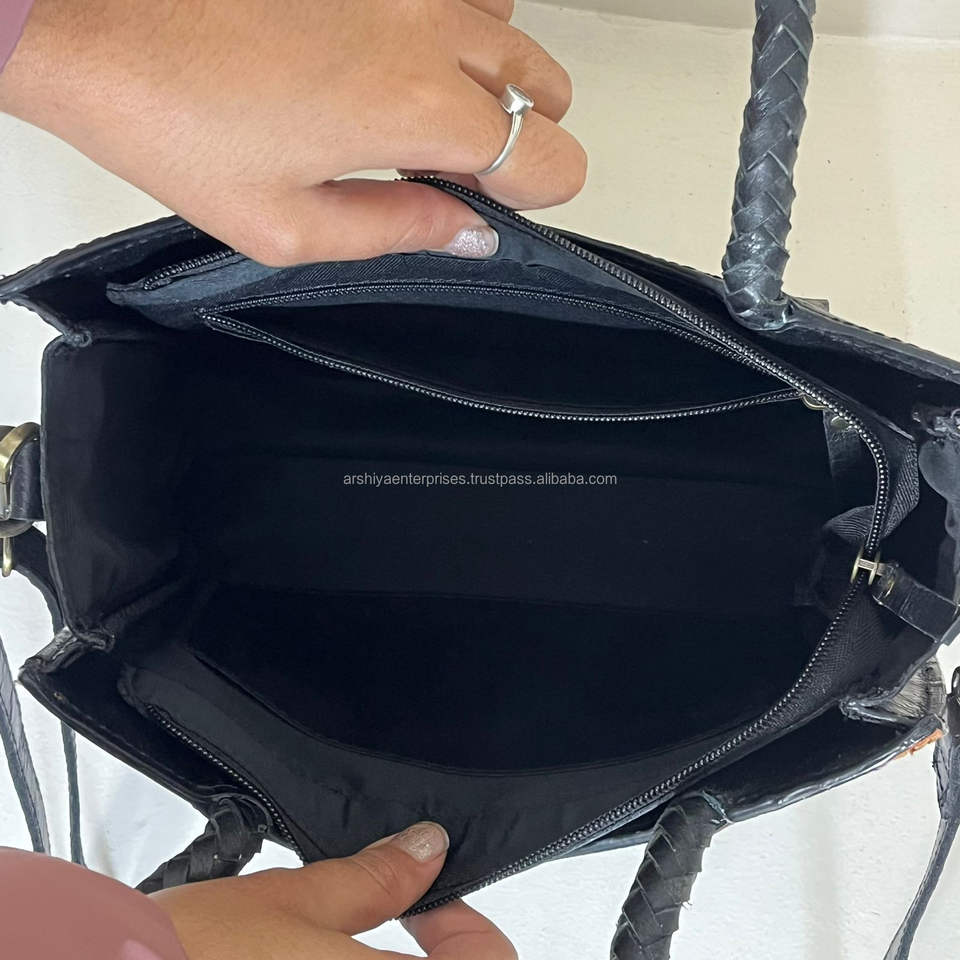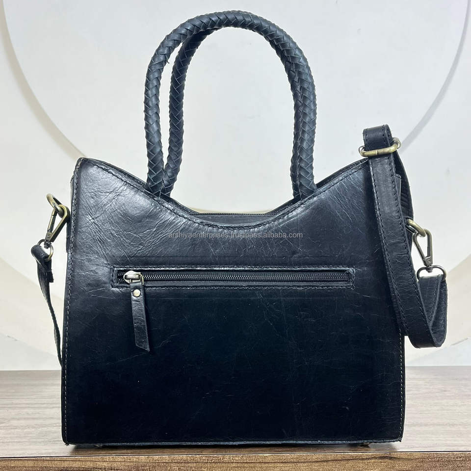 Nombre del producto:Bolso Tote de Cuero con Diseño a Cuadros Hecho a Mano