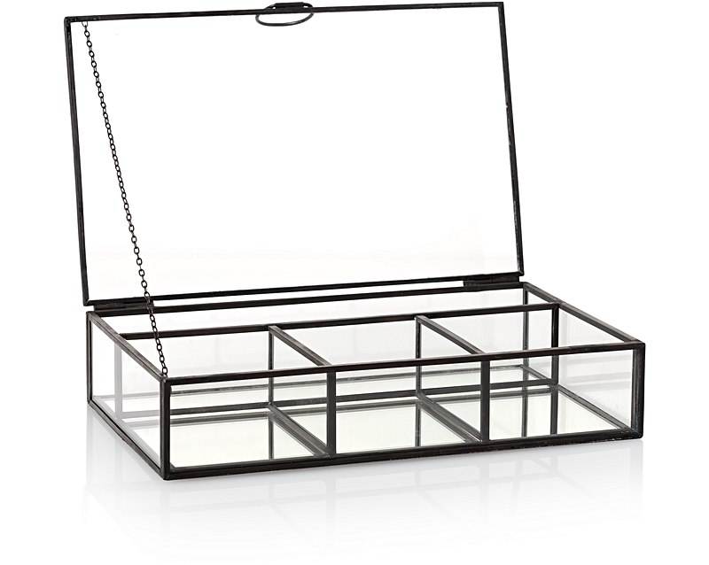 Caja de Almacenamiento de Vidrio con Marco de Latón de Lujo, con Divisores, Organizador de Bolsitas de Té, Caja de Exhibición Moderna para Cosméticos, Maquillaje y Joyería