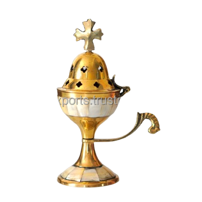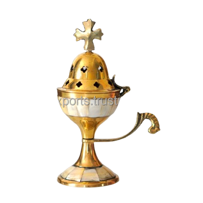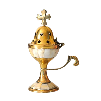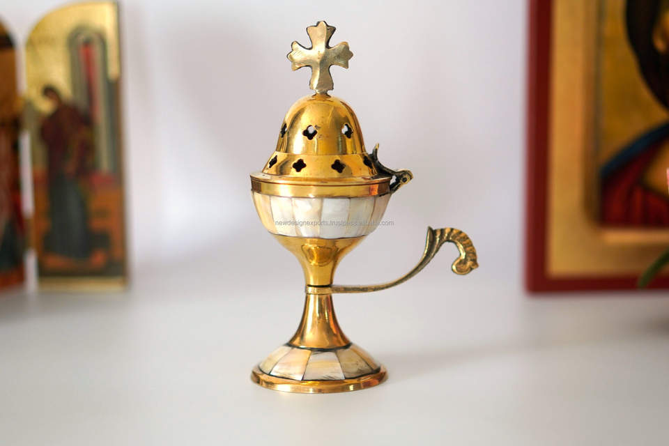 Incensario de Lujo con Incrustaciones de Latón y Concha - Porta Incienso Religioso Tradicional para Oración y Meditación - Cáliz Decorativo