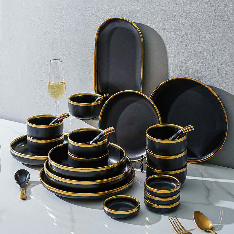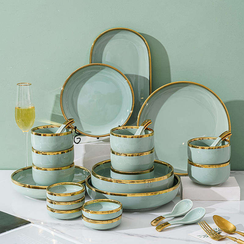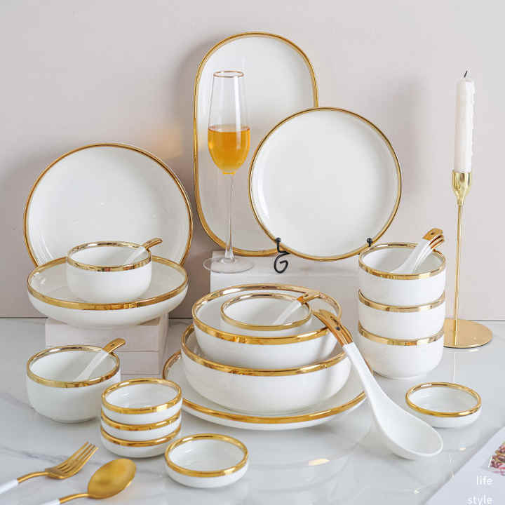 Juego de vajilla de porcelana blanca brillante de lujo 26 piezas platos y cuencos juego de vajilla de cerámica para 8 personas