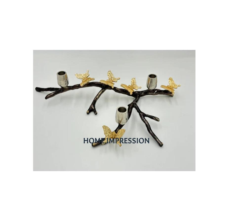 Lujo mariposa Ginkgo diseño nuevo patrón mesa superior portavelas espejo de Metal pulido soporte para decoración del hogar uso