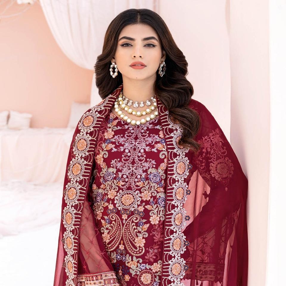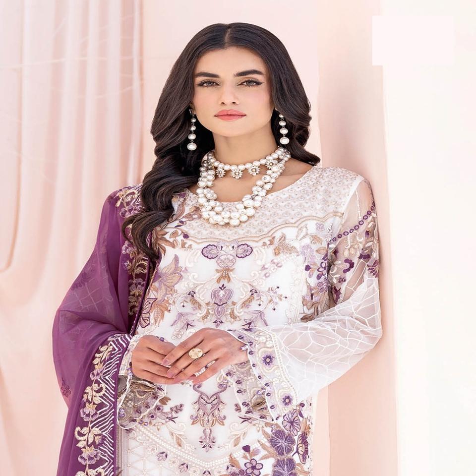 Colección de gasa de lujo bordado pesado Ramsha Vol 2017 venta completa vestido de novia paquistaní Lehnga Choli Salwar Kameez indio