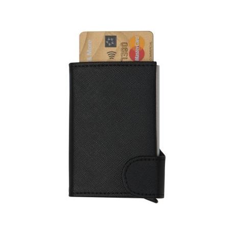 Cartera de cuero sintético con compartimento para billetes, dispensador de tarjetas de crédito de aluminio y protección contra lectura RFID