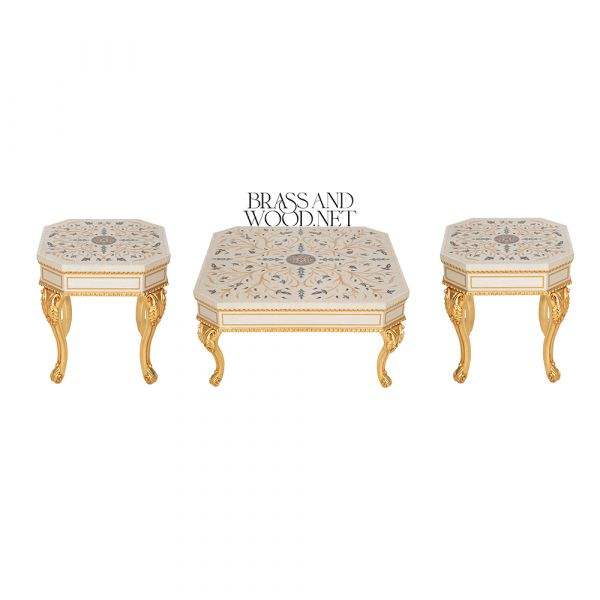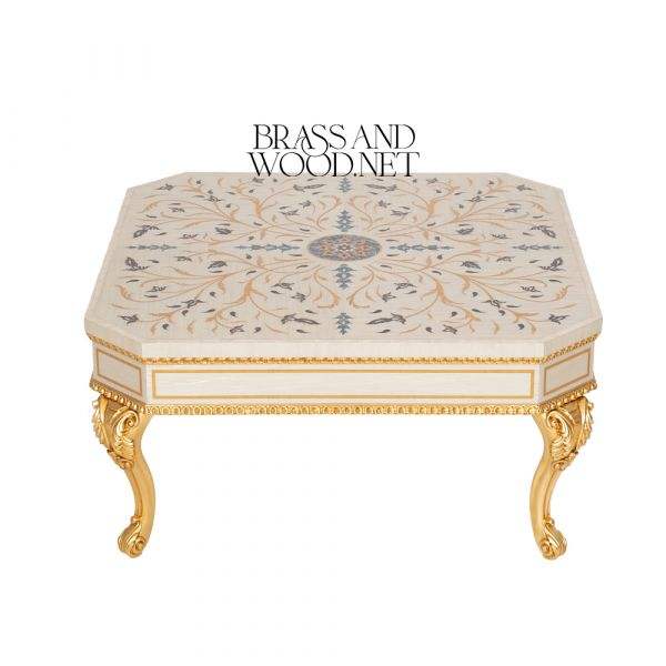 Juego de Mesa de Madera Pintado a Mano con Detalles Dorados de Lujo Clásico