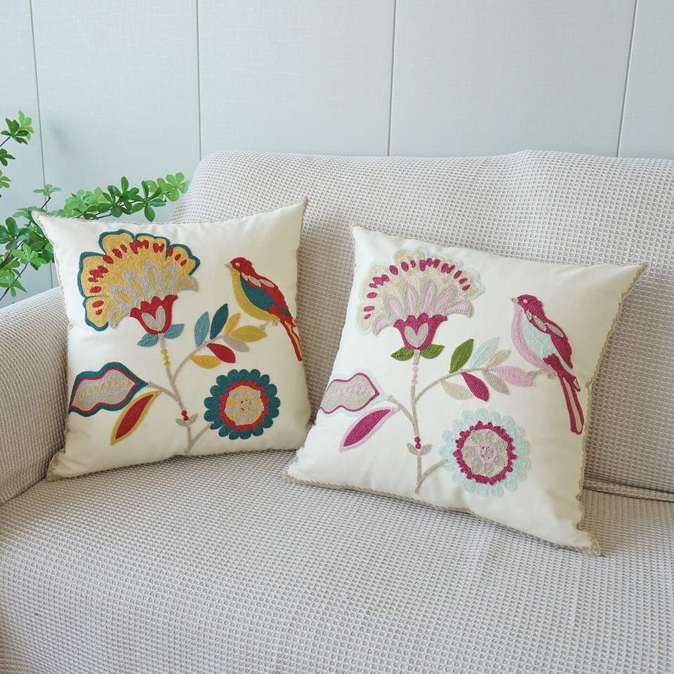 Funda de Almohada de Lona Bordada Rústica Clásica de Lujo con Diseño de Plantas y Aves, Cierre de Cremallera, Personalizable para Sala de Estar o Sofá