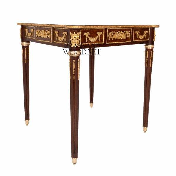 Juego de Mesa de Centro de Madera Clásica de Lujo con Detalles en Latón