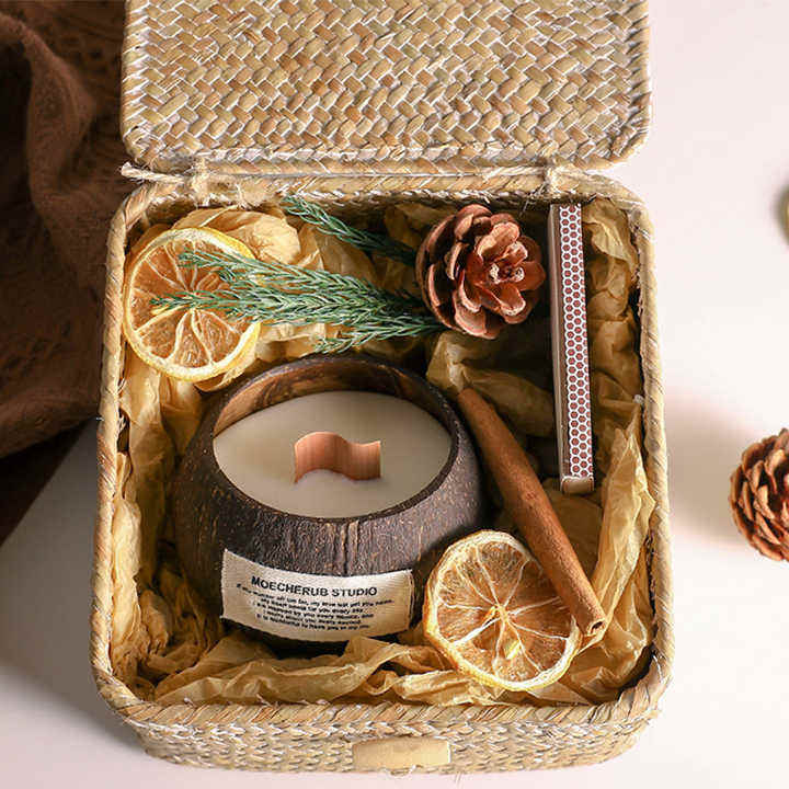 Cuencos de cáscara de coco de lujo con vela perfumada para la graduación de Navidad Día del Padre-Día de San Valentín Caja de regalo de coco