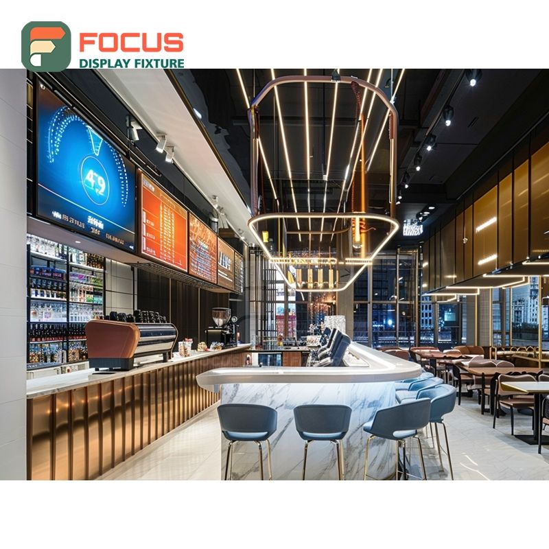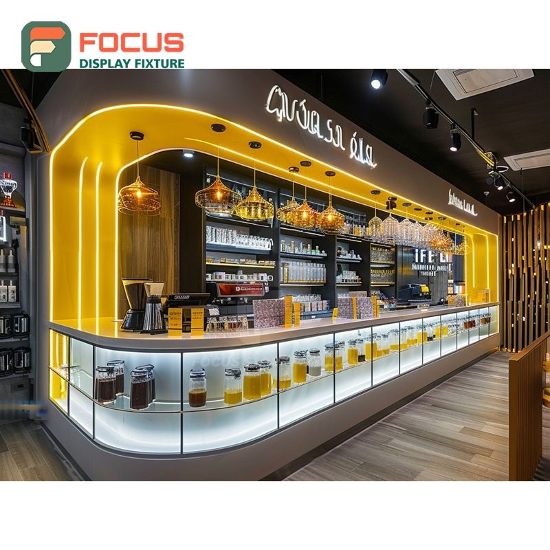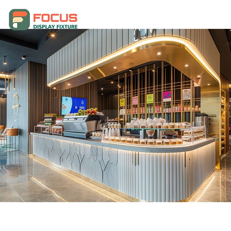 Mostrador de Servicio de Café de Lujo, Zona de Pago, Estante para Pastelería, Mostrador de Café de Roble Natural