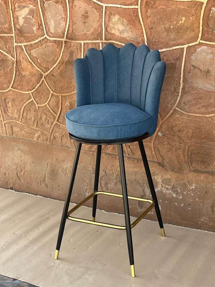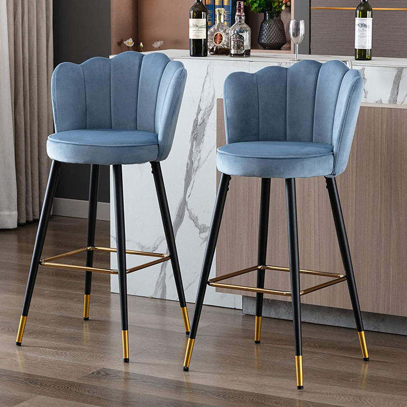 Taburete de Bar de Lujo con Forma de Flor Colorida, Silla de Bar de Tela de Terciopelo con Patas de Metal Doradas