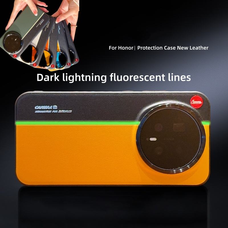 Funda Trasera de Cuero Mate de Lujo con Línea Fluorescente en Color de Contraste para Honor Magic8 Pro / Magic8 5G