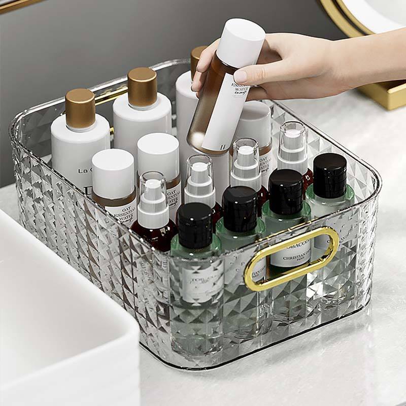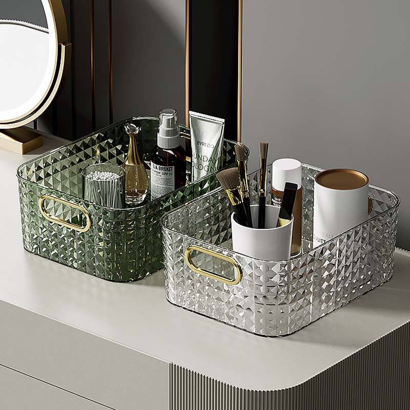 Caja de Almacenamiento de Cosméticos de Lujo, Transparente, Dorado Ámbar, 1L, Diseño de Rejilla, Organizador de Escritorio para Hogar, Dormitorio, Cocina
