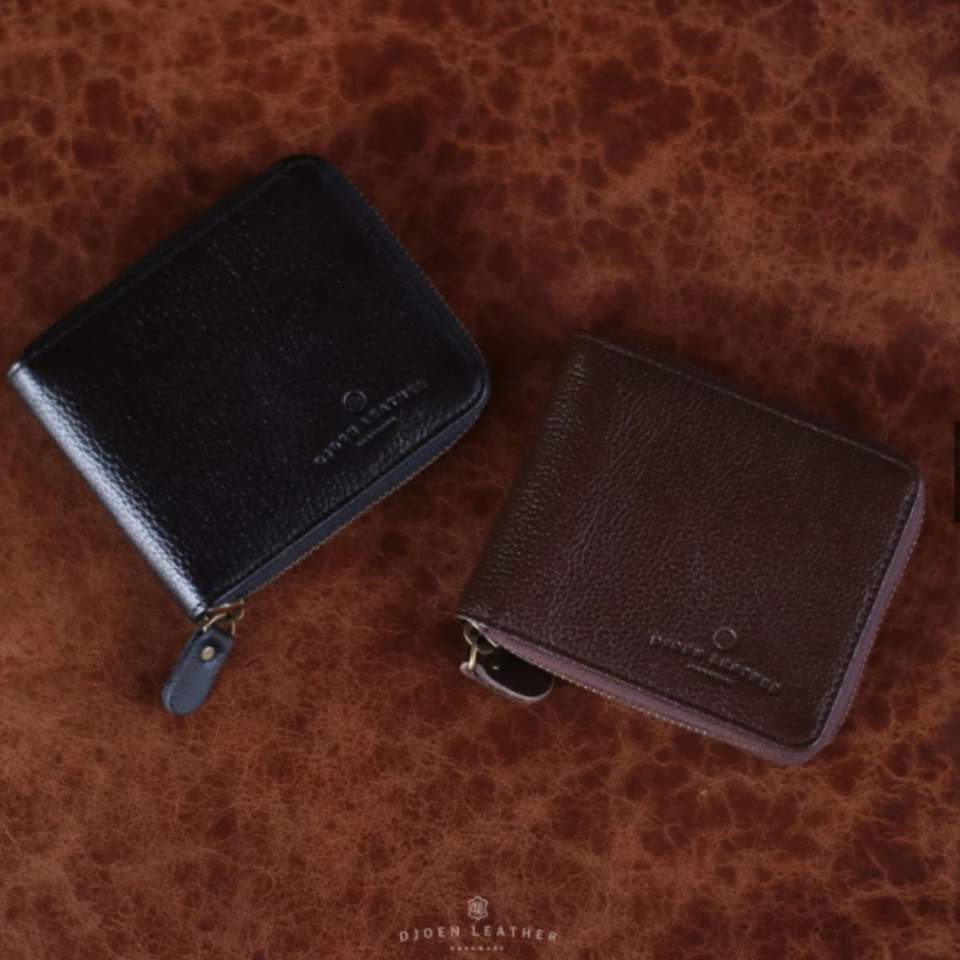 Cartera plegable de cuero de vaca de lujo con cremallera minimalista pero funcional con cierre de cremallera seguro, hecha de cuero genuino de primera calidad
