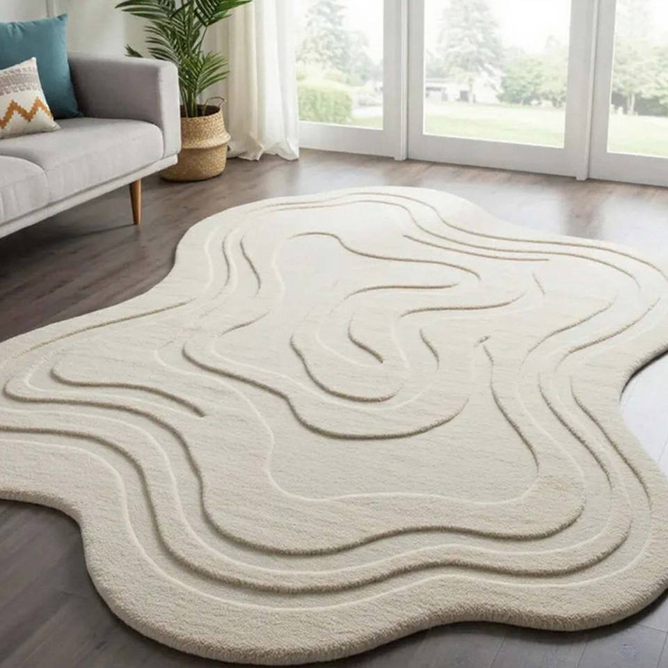 Alfombra de lujo irregular de felpa suave, estilo minimalista, para sala de estar, dormitorio, decoración estética del hogar.