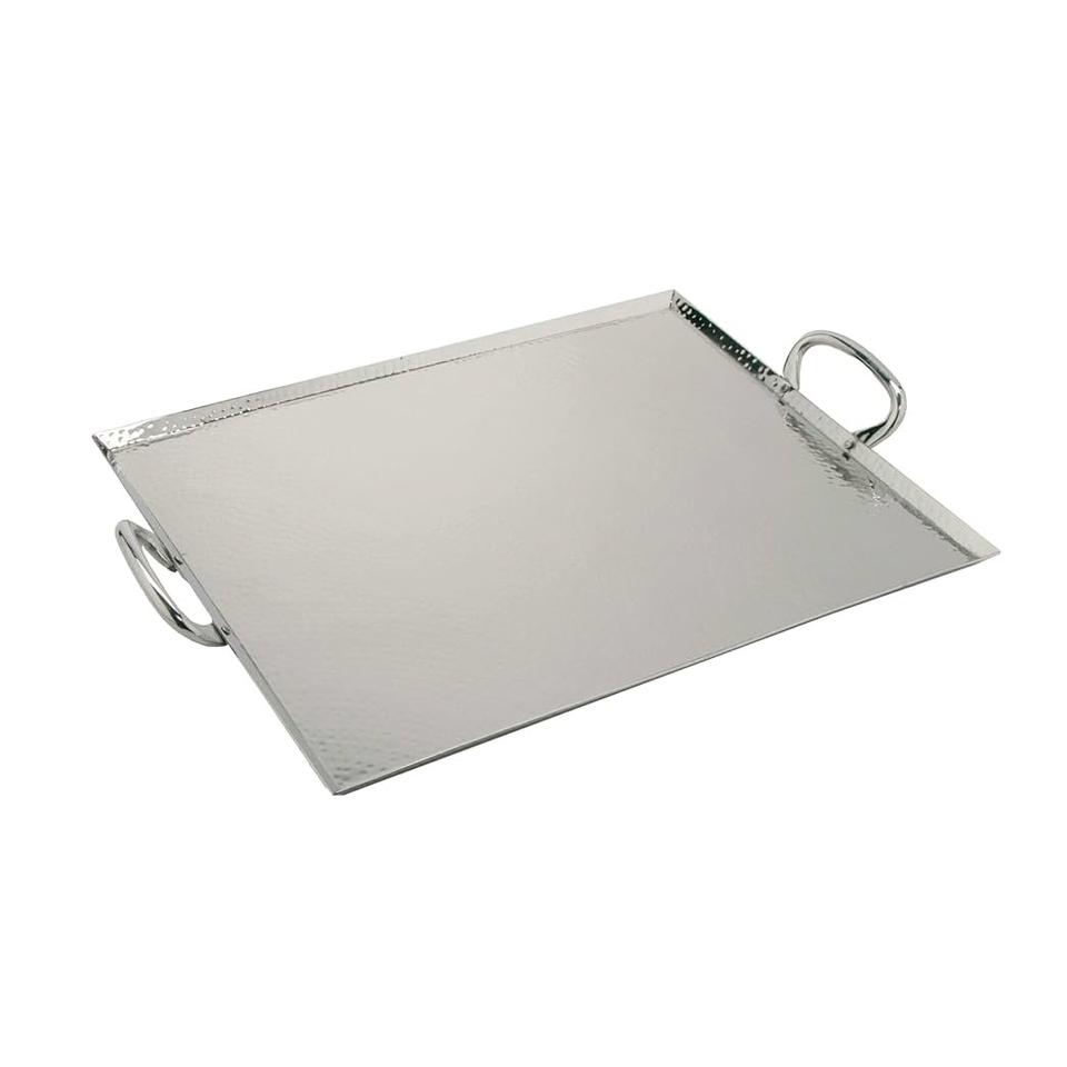 Bandeja de Servir Rectangular de Metal con Textura de Cocodrilo, con Asas Integradas, Elegante Bandeja Decorativa Plateada para Otomanas