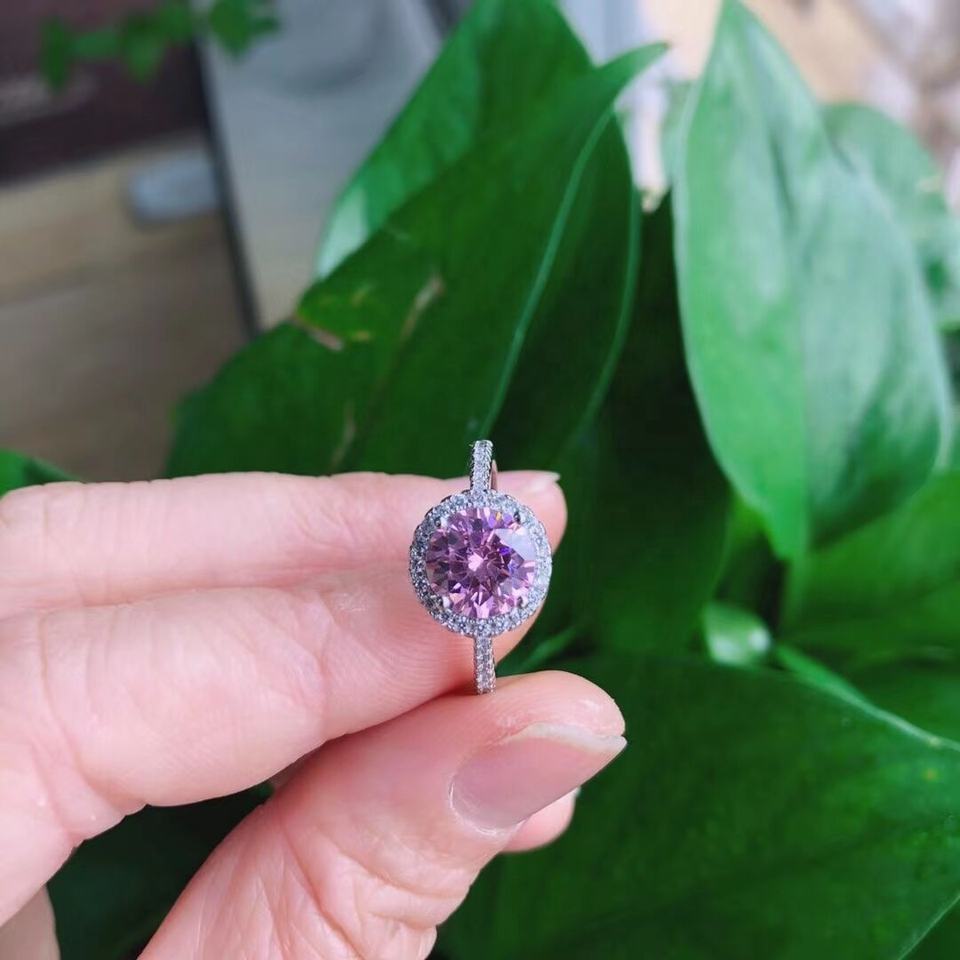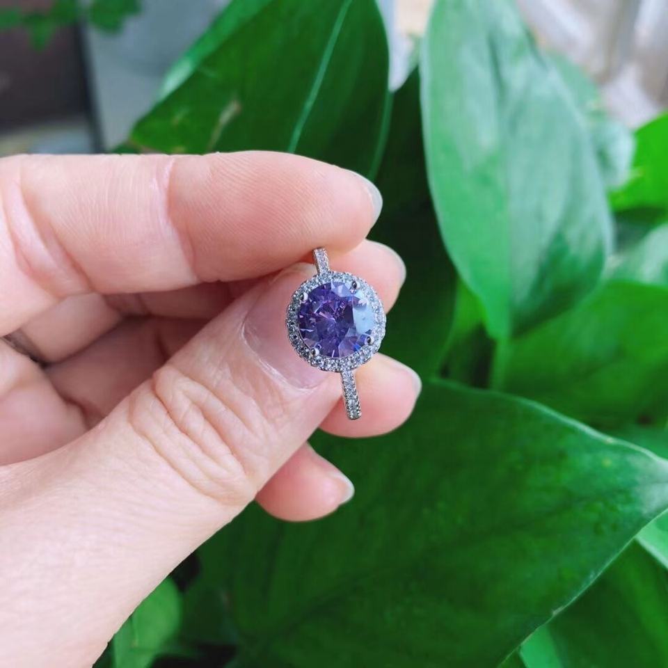 Anillos de dedo redondos morados de cristal de lujo para mujer, joyería, anillos de moda, accesorios de boda para novia, anillo de mano