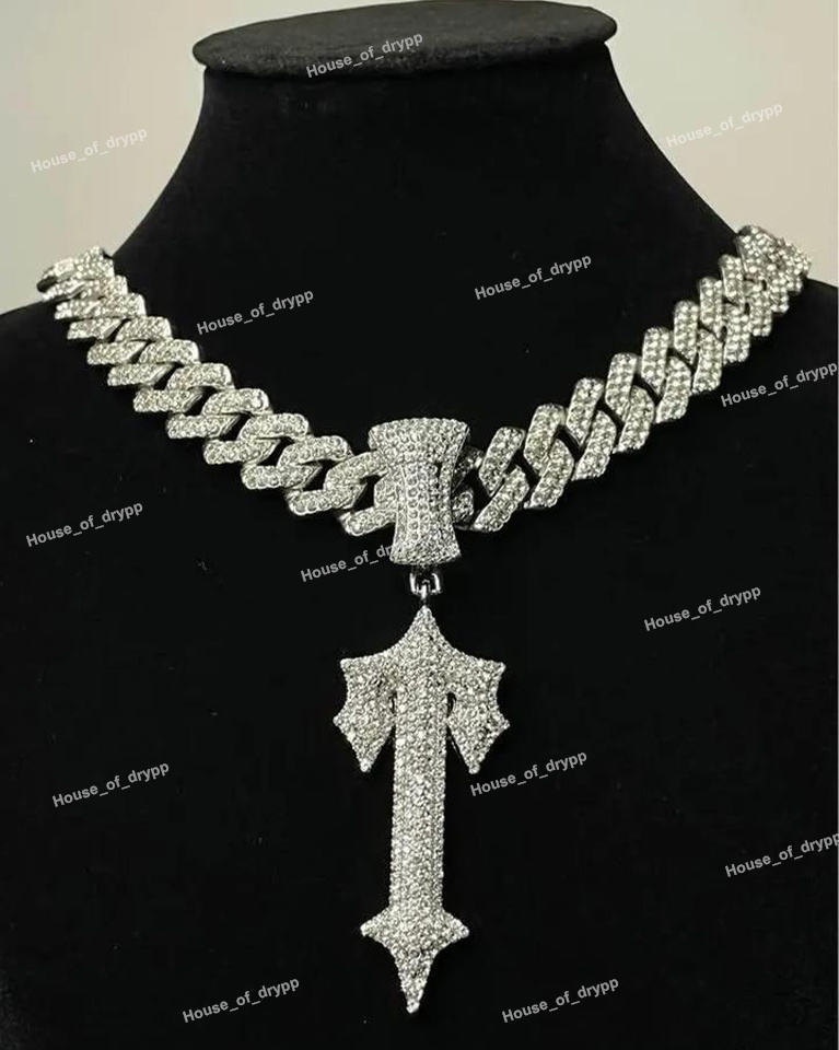 Cadena Cubana de Plata 925 con Colgante de Cruz de Flecha con Diamantes Moissanite, Joyería Brillante con Diseño Atrevido y Moderno