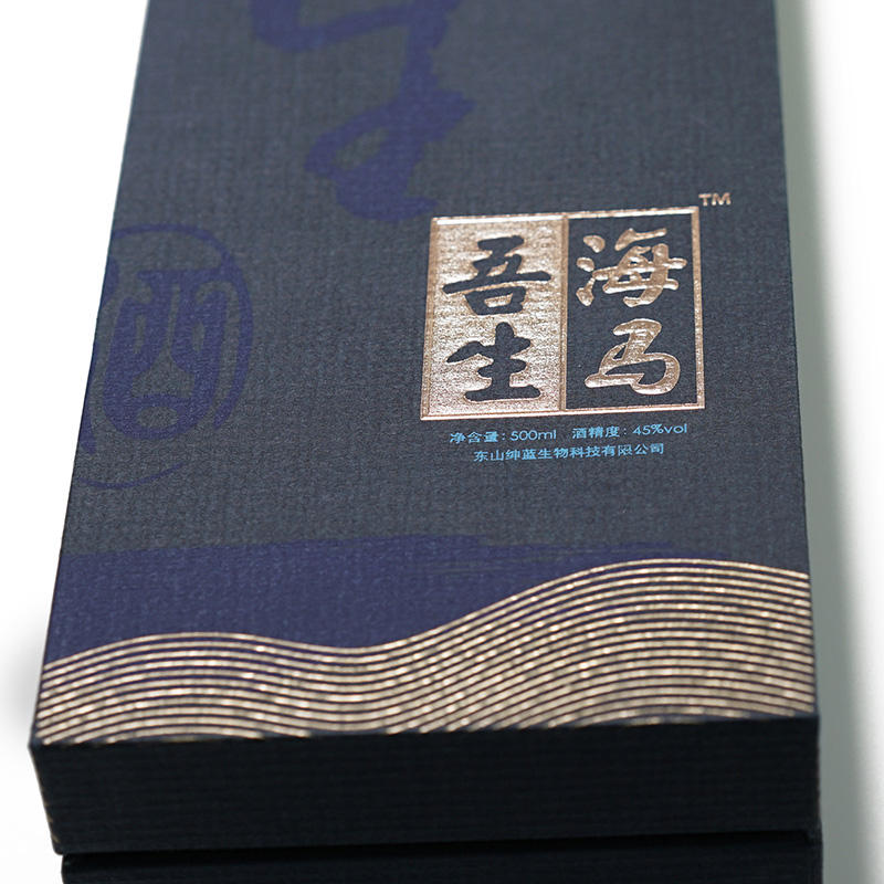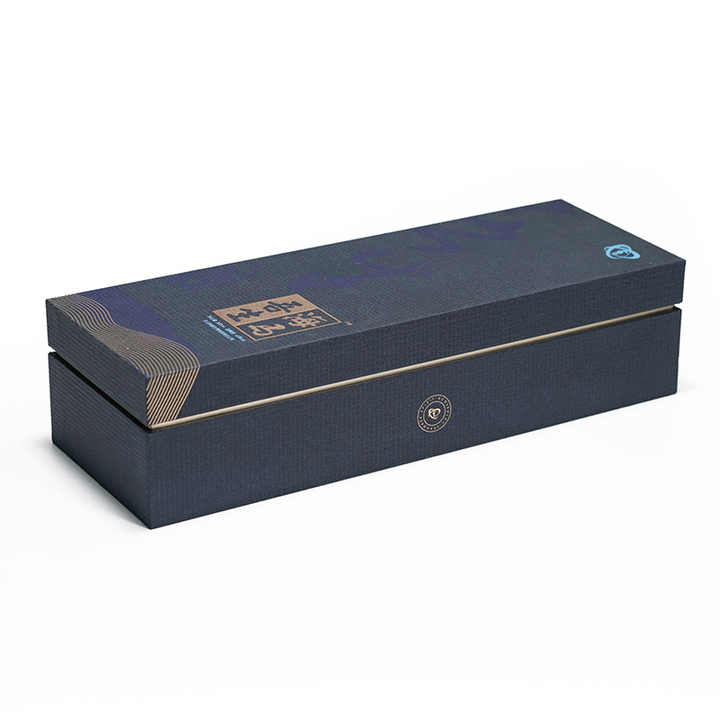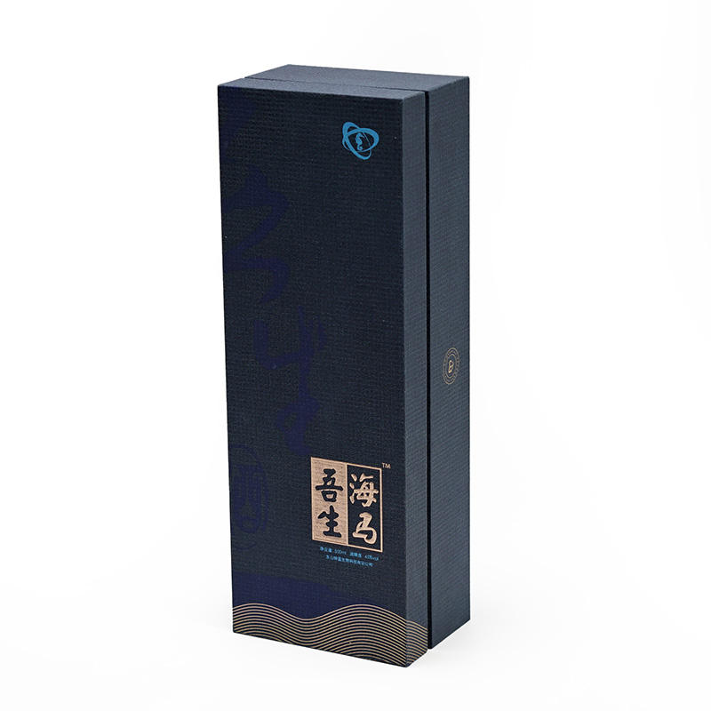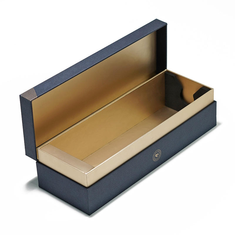 Caja de Regalo Rígida Azul Oscuro Personalizada de Lujo con Logotipo Estampado en Caliente y Acabado Mate para Botellas de Vino y Empaquetado Minorista Premium