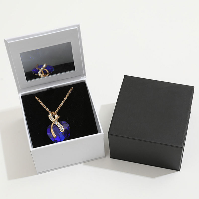 Joyero de lujo con logotipo personalizado con diseño de embalaje de papel de espejo para collar, anillo y juego de regalo, cinta incluida