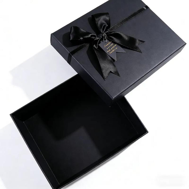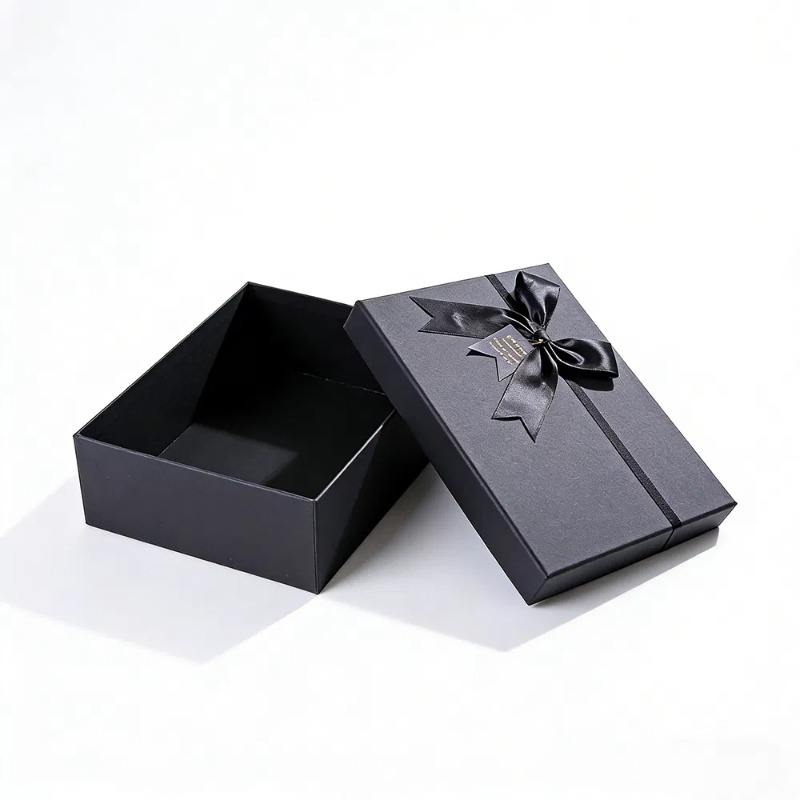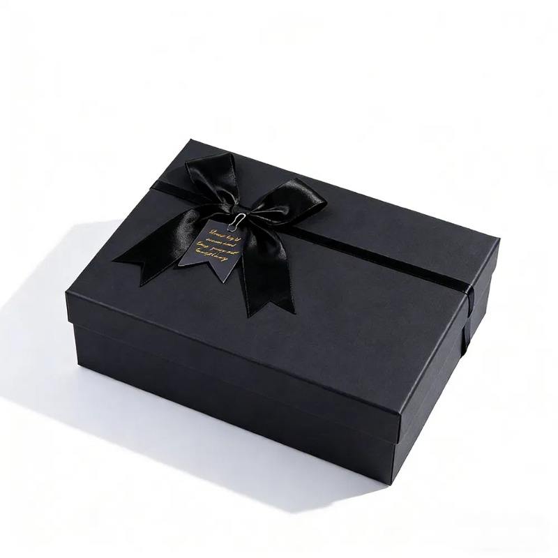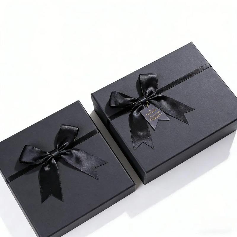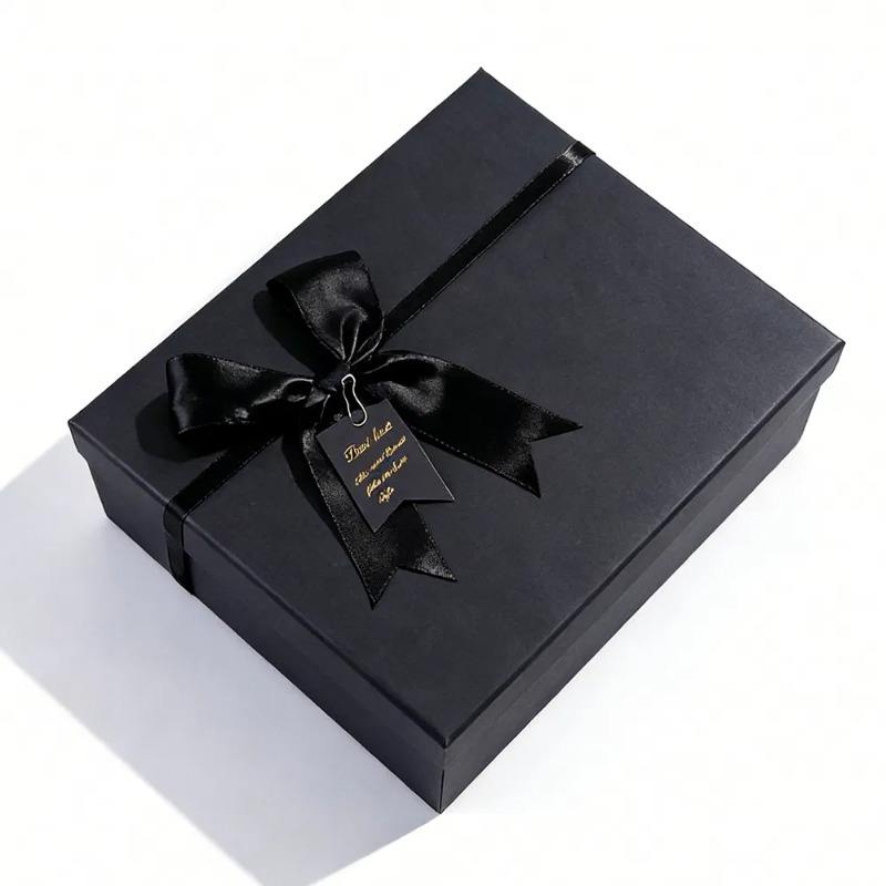 Caja de Regalo de Cartón Rígido Plegable de Papel Negro con Logotipo Personalizado de Lujo