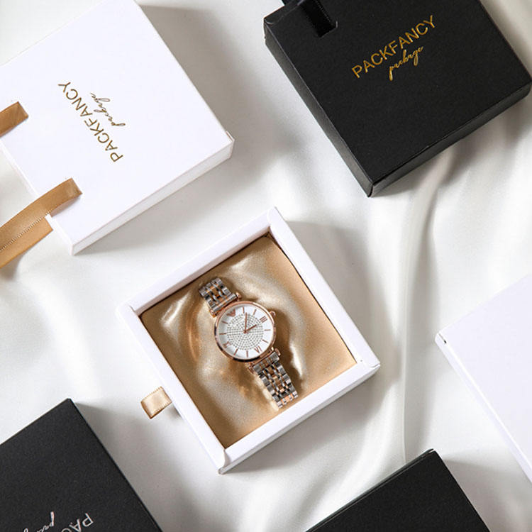 Caja de Joyería de Cartón Rígido con Cajón Deslizante y Logotipo Personalizado de Lujo para Relojes, Pulseras y Collares con Asa