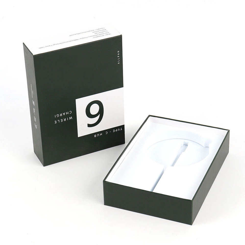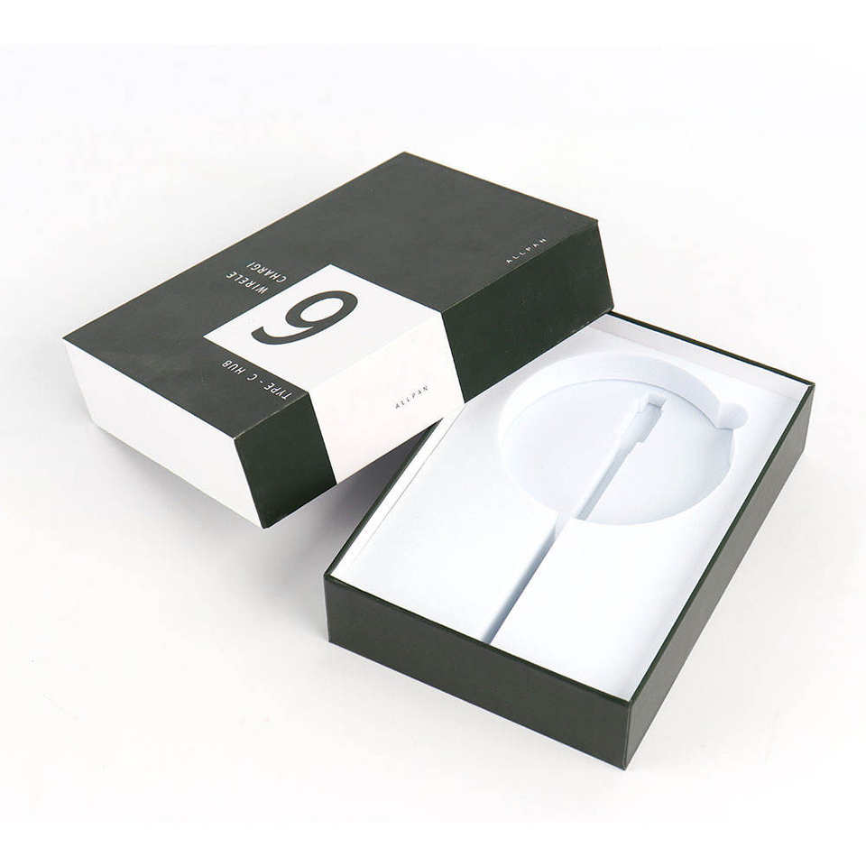 Caja de Regalo de Lujo con Impresión Personalizada para Cables y USB, con Inserto de Espuma para Cargador Inalámbrico