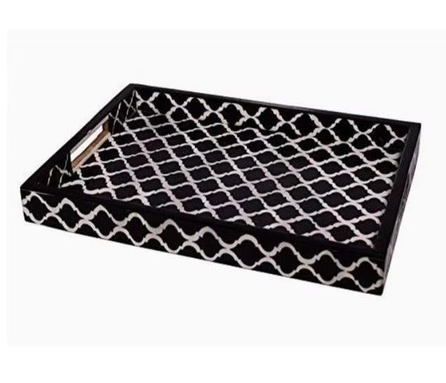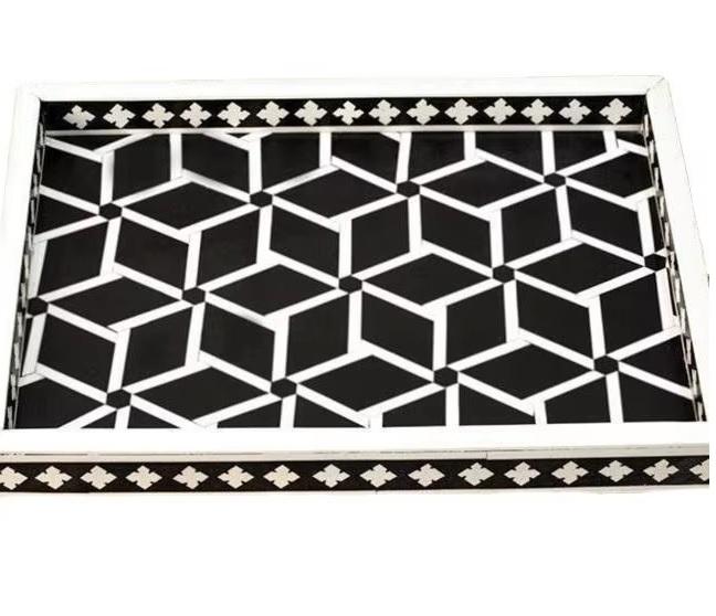 Bandeja de Servir de Lujo Personalizada con Incrustaciones de Hueso, Elegante Diseño de Estrella de Nácar, Hecha a Mano, Color y Logotipo Personalizables, para Restaurante, Hogar, Hotel