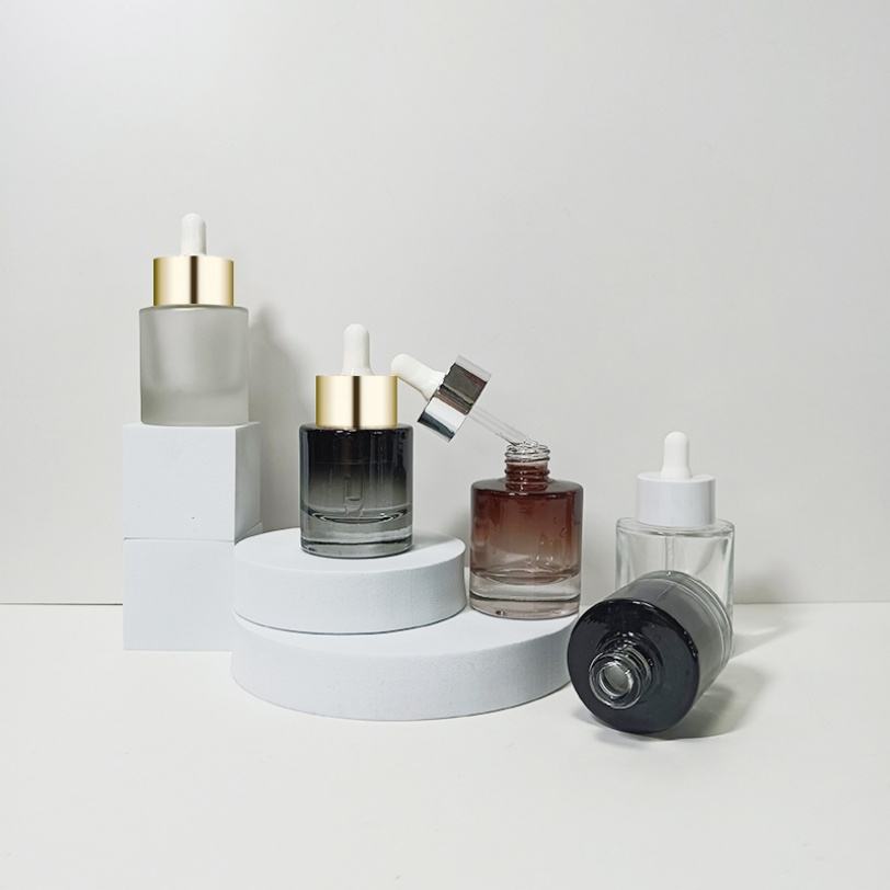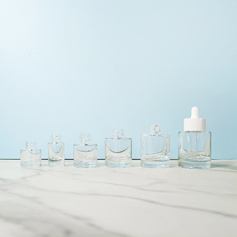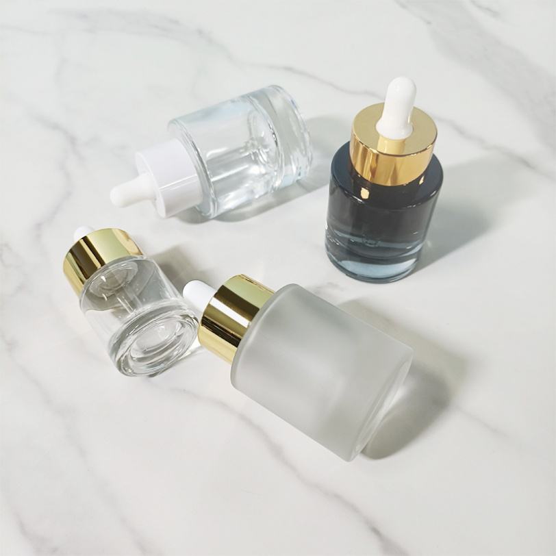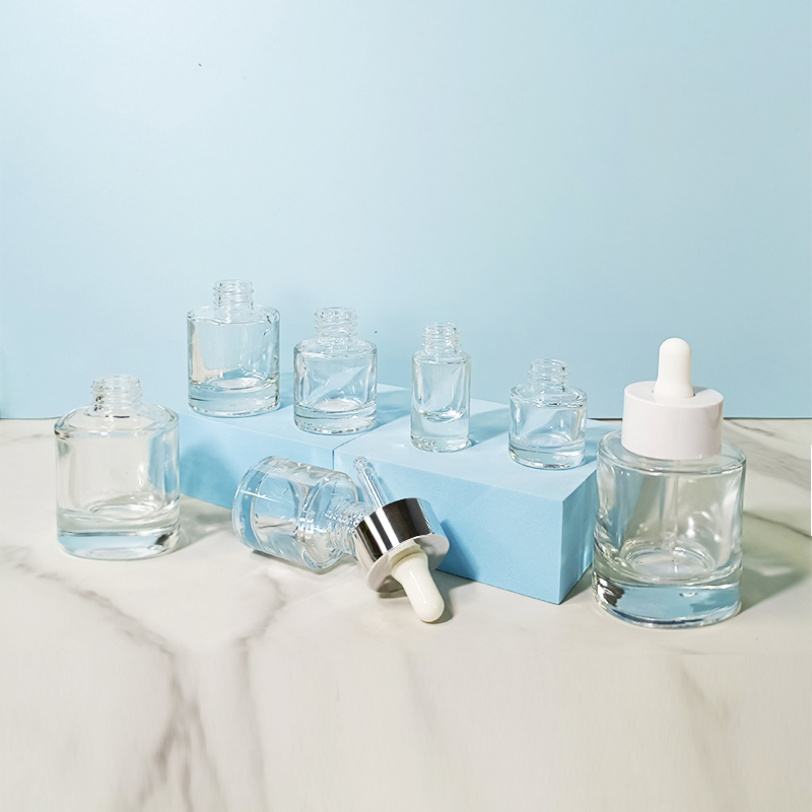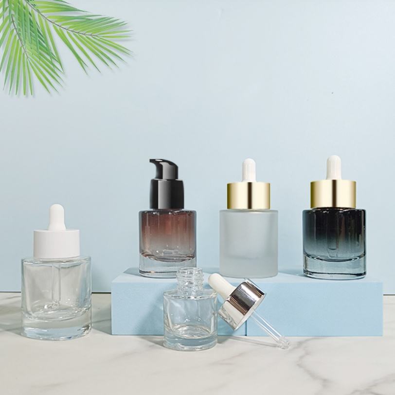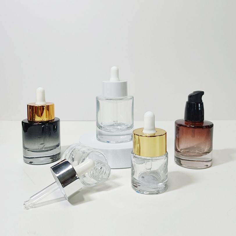 Botella de Vidrio Redonda de 30 ml con Fondo Grueso, Personalizada y de Lujo, para Base de Maquillaje Líquida, Suero o Loción, con Bomba Dosificadora