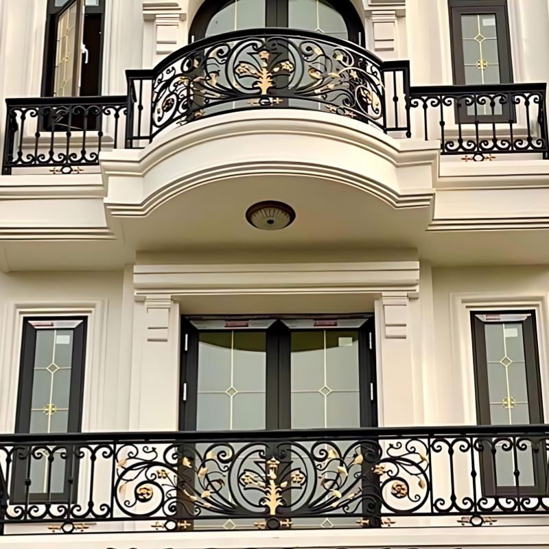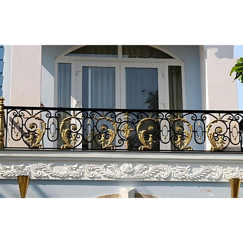 Decoración de lujo Barandilla de balcón de hierro forjado Diseños de acero Imágenes Balcón decorativo Pasamanos de metal