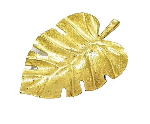 Bandeja de servicio de Metal de hojas decorativas de lujo, plato de fruta usado de diseño moderno para cocina, acabado de Color dorado