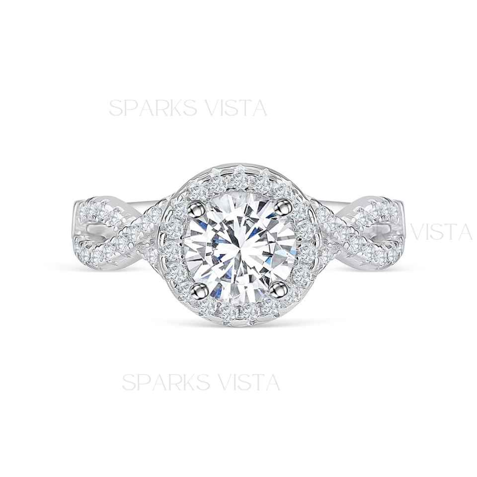 Anillo de Compromiso de Diseño de Lujo con Halo de Moissanita en Oro de 10K/14K/18K, Certificado GIA, Engaste de Bisel, Joyería de Diamante Ovalado, Banda Trenzada, Moderno