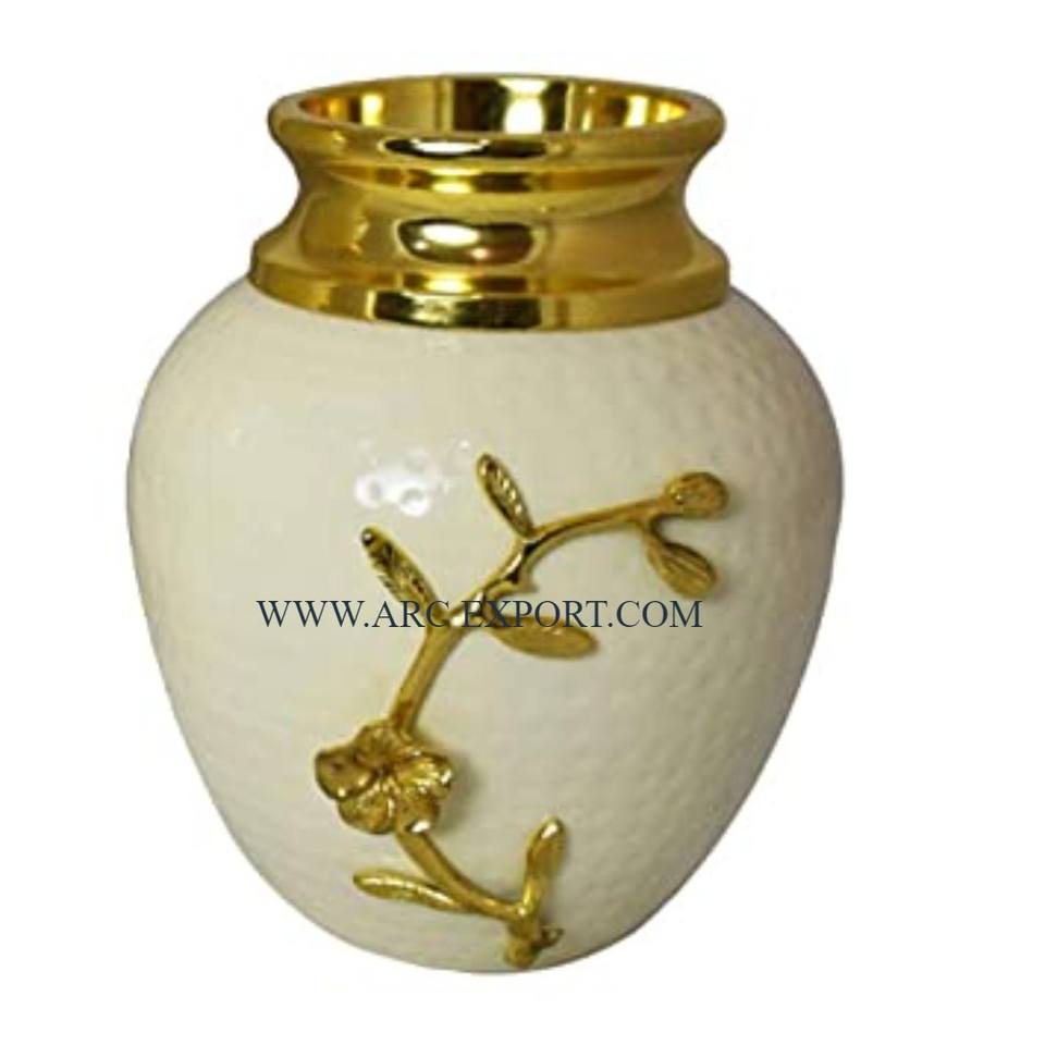 Luxury Design Home Side Table Decorative Flower Pot Vintage White Powder Coated Metal Hammered Flower Vase in Affordable Price