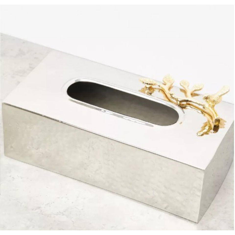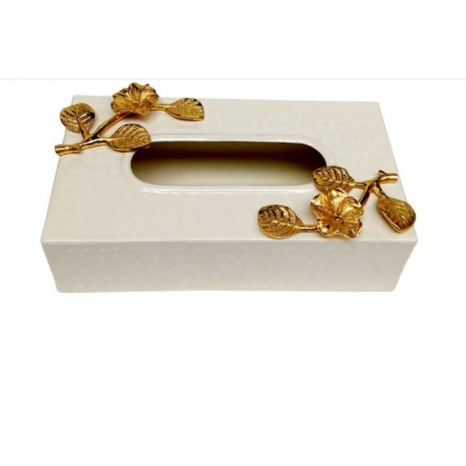 Caja de pañuelos Rectangular de diseño de lujo para decoración del hogar, accesorios de baño, caja de pañuelos de Metal de calidad de lujo con acento de flor de Romero