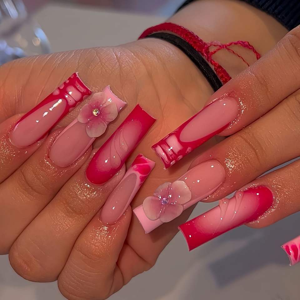 Uñas Postizas de Acrílico de Diseño de Lujo, Reutilizables, Personalizadas, Uñas Artificiales