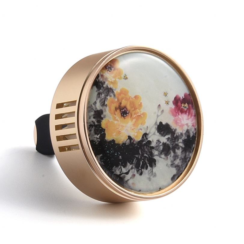 Difusor de Aromaterapia para Auto, con Clip para Rejilla de Ventilación, Diseño Circular de Lujo, con Adhesivo Epóxico y Imán Metálico Plateado