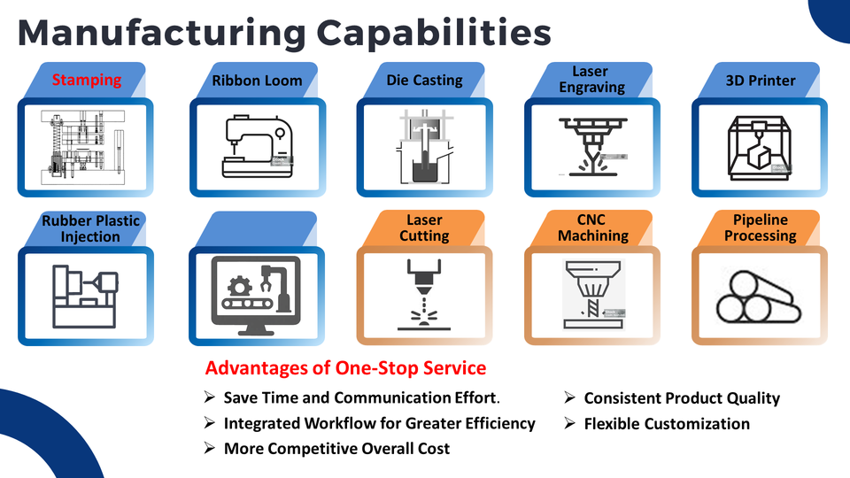 Precision Manufacturing Processes:Stamping, CNC, Die Casting, Injection Molding, Forging, Wire EDM, etc.